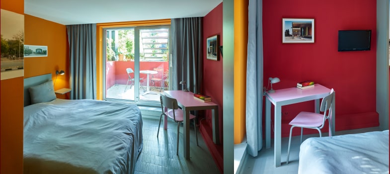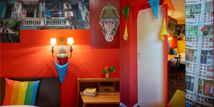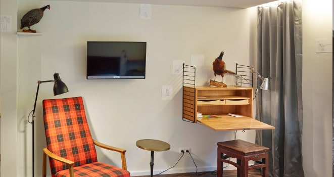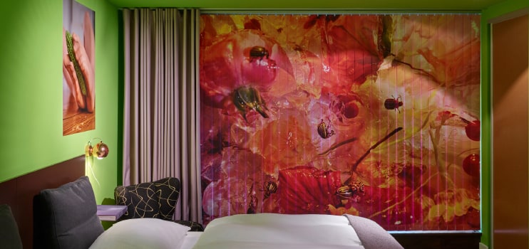 When you open the door, you enter a room that should surprise you a little: Comfort and modern furnishings meet artistic inspiration.