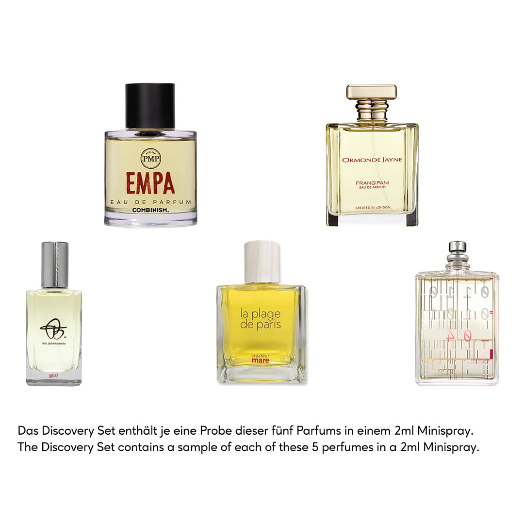 Lebensart kann man nicht nur sehen, hören und schmecken – man kann sie auch riechen. Abseits der großen Parfümgeschäfte bieten wir Ihnen eine kleine Entdeckungsreise in die Welt individueller Düfte an. Welcher der exklusiven Düfte passt am besten zu Ihnen? Was unterstreicht am schönsten Ihre persönliche Note? Finden Sie es in Ruhe heraus – mit einem Discovery Set, das von großartigen Parfümeuren für Sie kuratiert wurde.